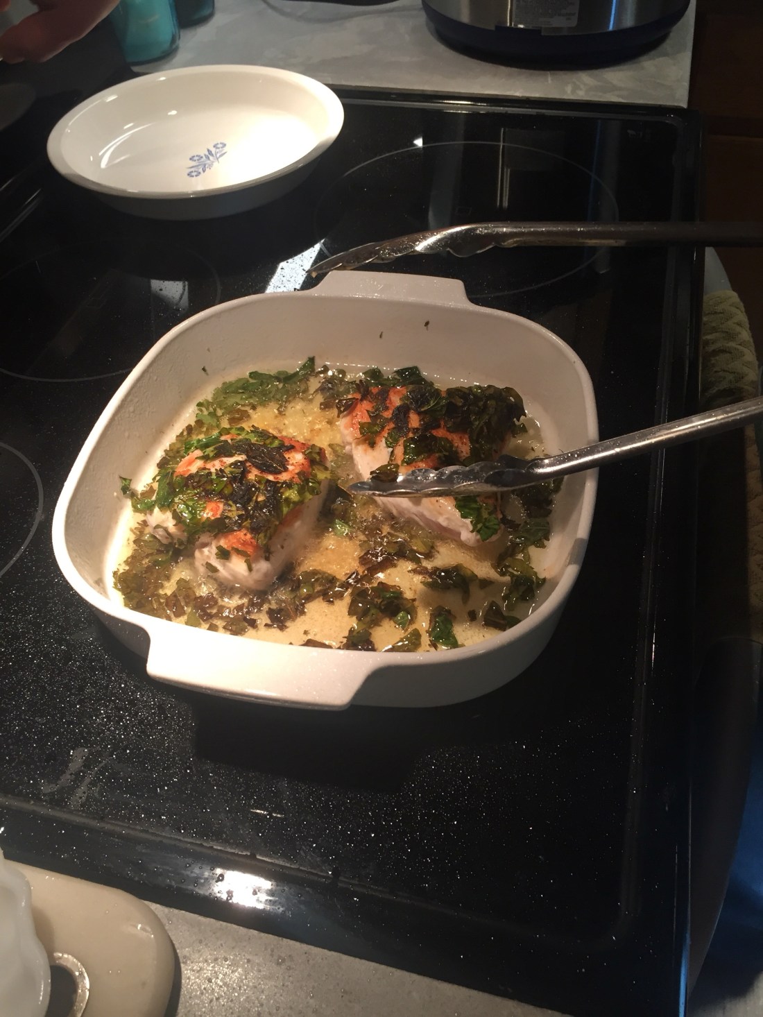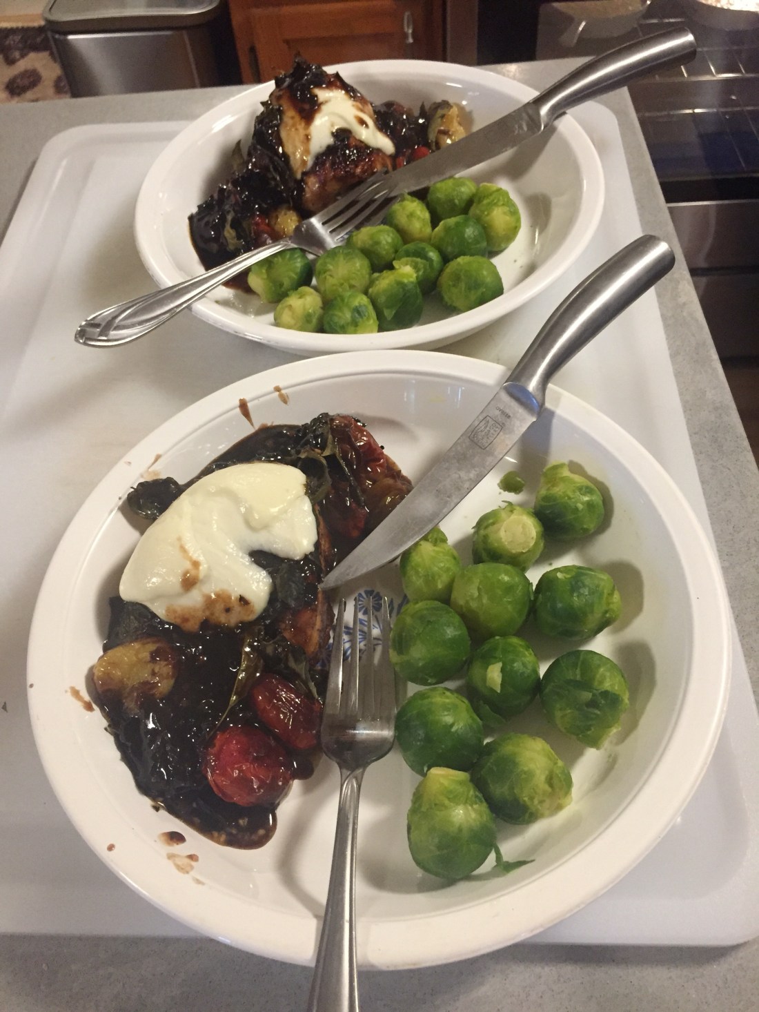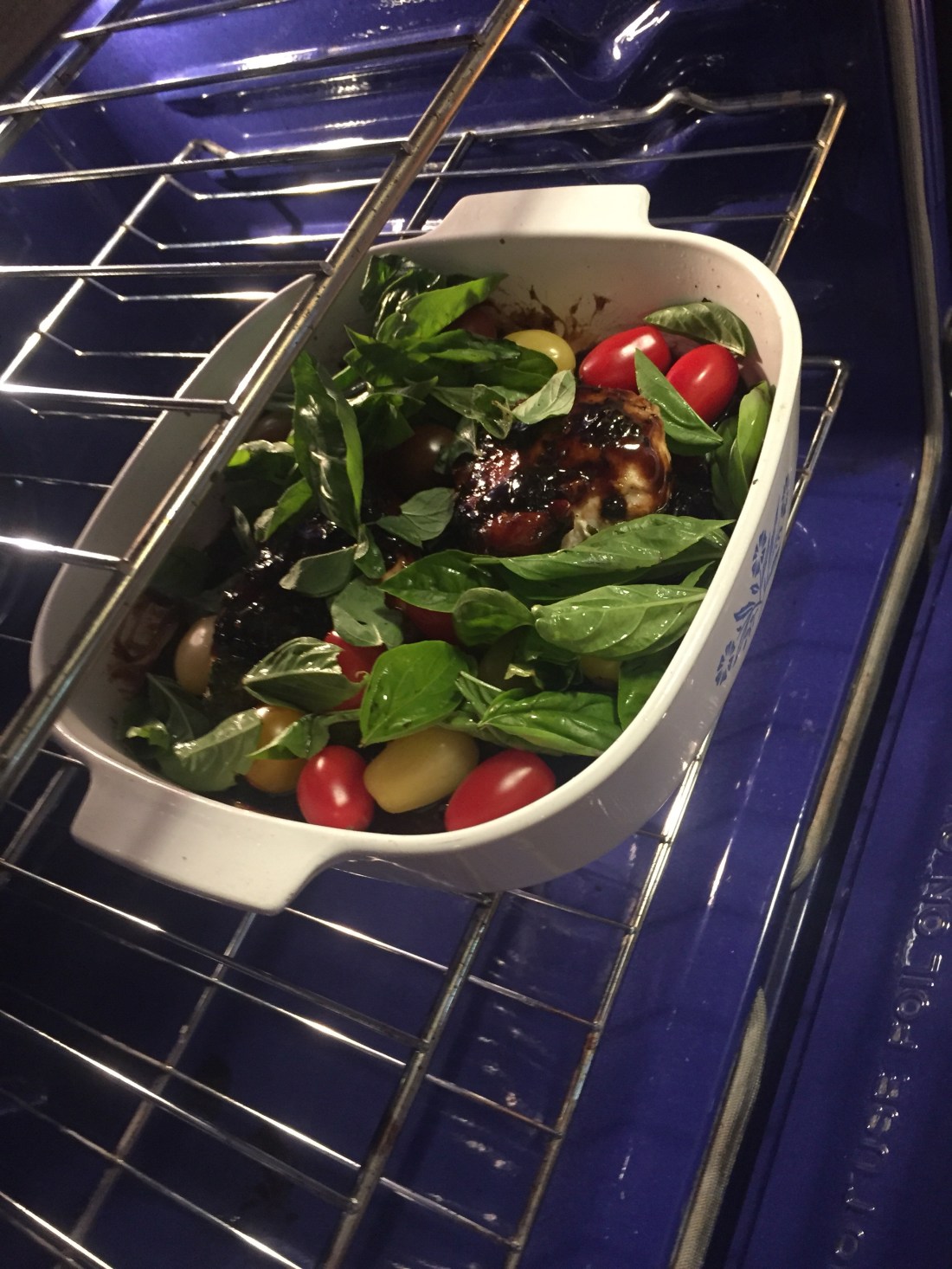 Anyway… Just braise the chicken on the stove top following the recipe and then in the same Corningware casserole dish pop it in the oven to finish cooking. Simple to cook and even easier to clean. One pan for everything! What’s not to love! Fresh herbs and tomatoes from the garden too!