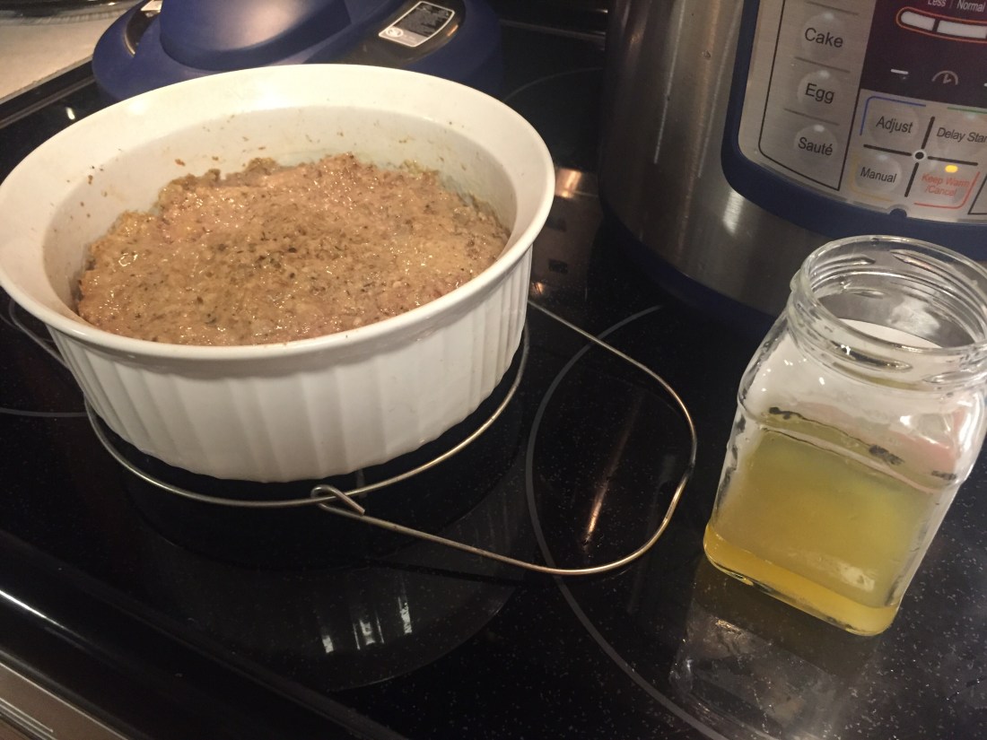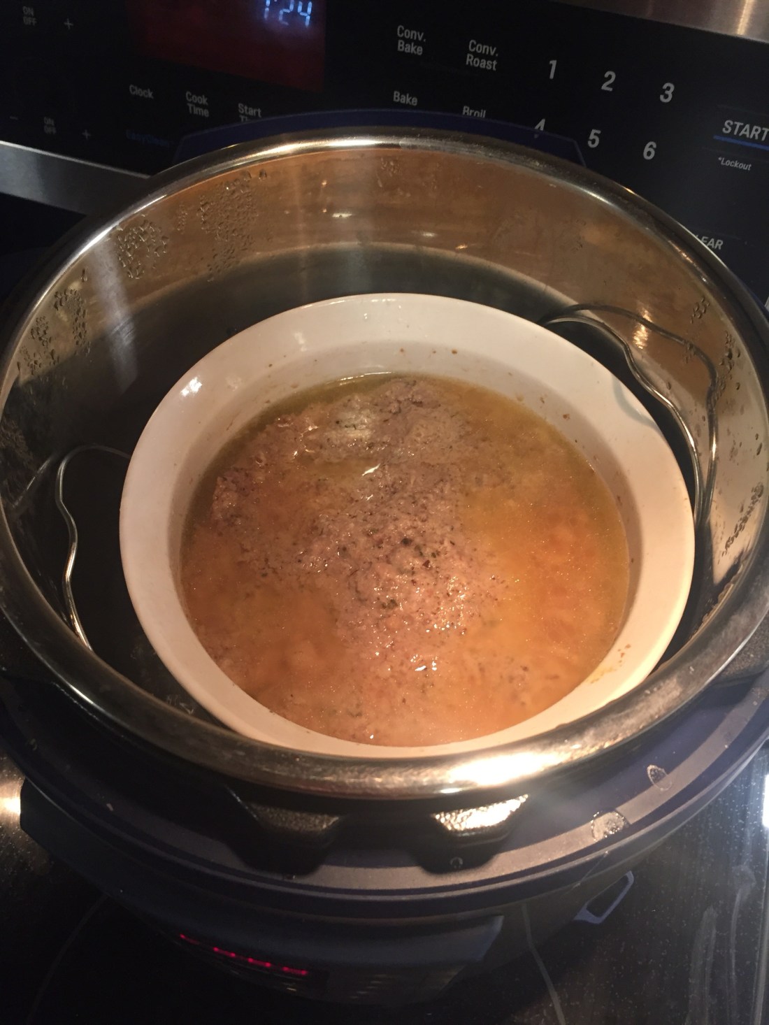 Place the ramekin on top of the trivet inside the instant pot. Close the lid and cook on manual (high pressure) for 45-60 minutes. When it’s done cooking check the meat with a meat thermometer to make sure it’s done (if not, put it back on to cook for a few more minutes).