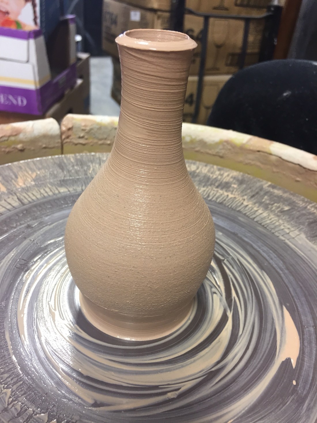 Then she showed me how to make a vase and we cut it in half to see how the thicknesses of the “walls” look so I would know what to “feel” for when I make one. Isn’t she fabulous! It took her all of 10 minutes to whip up this beautiful vase … I was so sad we had to cut it in half 😦 but a lesson needed teaching.