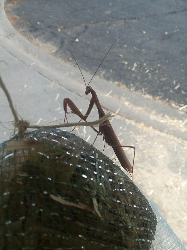 We had some material left over, but not enough to make a second ghost/alien (whatever lol) so we cut squares, made a small ball of straw, and tied it with twine similar to how we made the bigger one and then hung them from the trees for a couple of flying ghosts/aliens (whatever lol). Immediately after we hung the little guys up we got a visitor… sooooo cute! Photo is courtesy of my friend Violet… she got a better shot than I!
