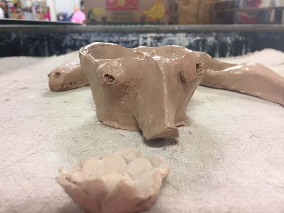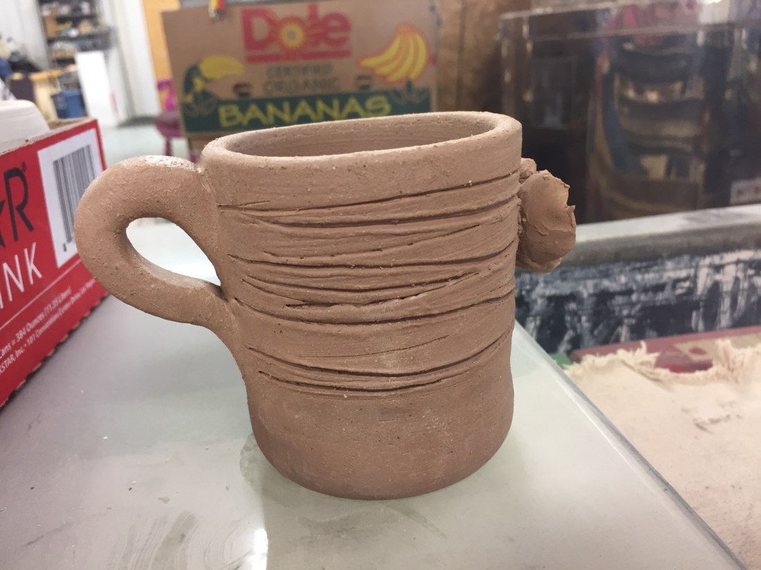 We spent an amazing day at SCRaP today making some fun little pinch pot examples for some classes we want to do for some local kids this winter. Meanwhile my friend Violet taught me how to attach the handle and the flower I made yesterday to my cup. We also cleaned and tidied a bit which is our volunteer part of the job to get the area set up for the kiddos to play and learn. Violet will be teaching and I am a novice so I am just the helper on this venture. I’m learning more than I am helping tho lol.