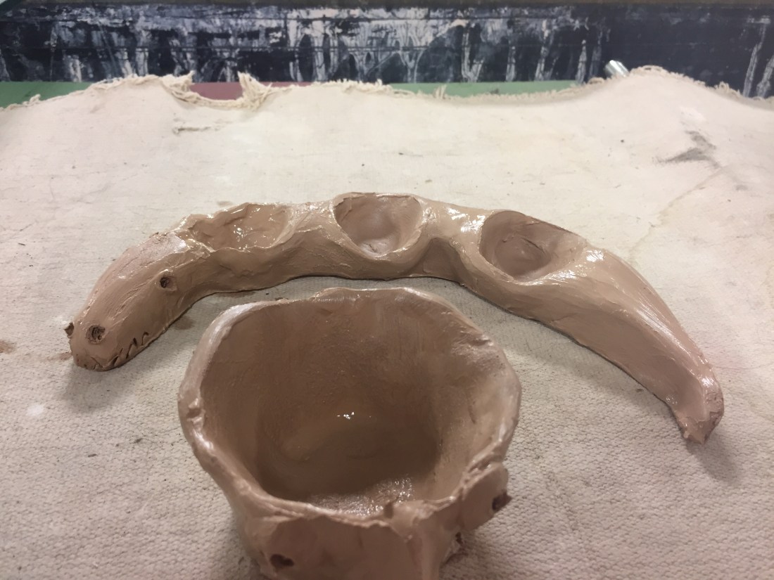 I decided to make a funny face pinch pot cup and a dragon jewelry holder. I made a dragon jewelry holder once upon a time when I was a kid taking pottery classes myself … and carried it around well into my 30’s before it finally broke in a household move 😦 so I thought maybe the kids might like a little inspiration and made a replica dragon for them to use as inspiration. I actually made this design up straight from my imagination when I was about 7 years old lol… I don’t remember this part of the story but apparently my much older (college age back then) brother (just for giggles) placed it in the local art show along with all their very nice fancy pottery with a price tag of $1500 just to make people giggle. Lol I’m sure that got some crazy looks! I think my dragon needs some additional features this time so he is not quite done yet 🙂 you will just have to check back to see his progress! But I’m thinking spiky ridges along his back hmmm