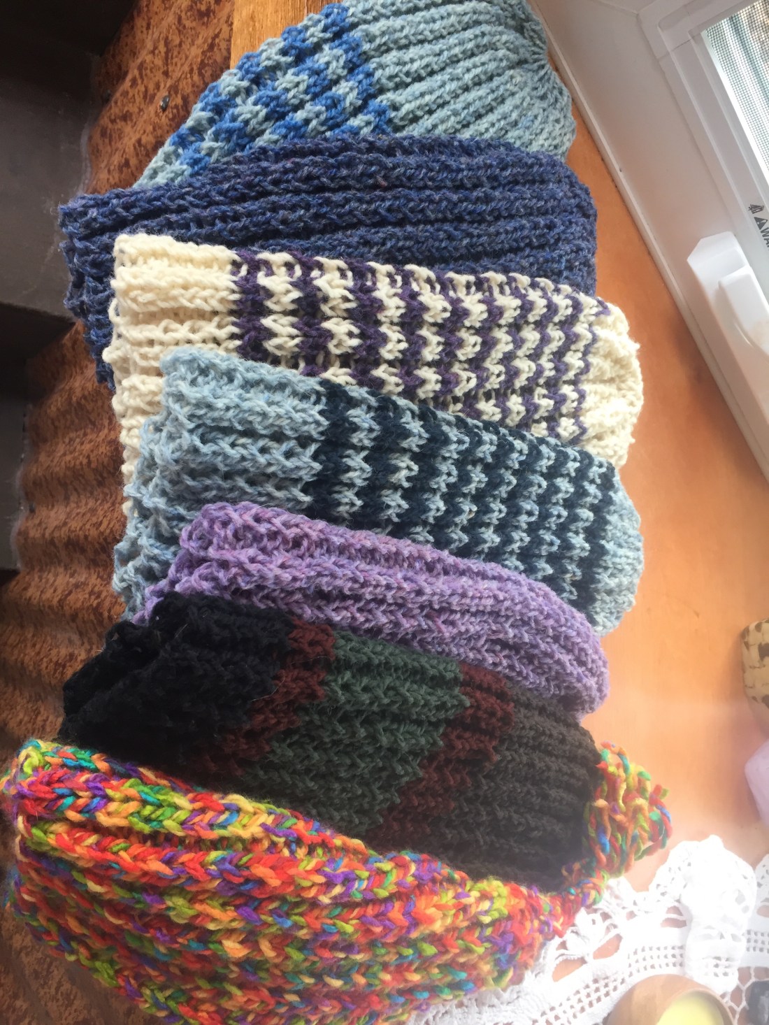 I had a special request to make some hats for a friend’s kids. Normally I don’t really enjoy making knit hats because it is sort of a basic beginner type thing to make. I like the more complicated fiddly bit type patterns like lace … but I downloaded a really basic quick and easy ribbed pattern hat from Redheart yarn website. That’s my usual go to web site for when I’m looking for a knitting pattern. I actually found the simple and easy to do pattern a nice change to the complicated stuff I normally attempt.
