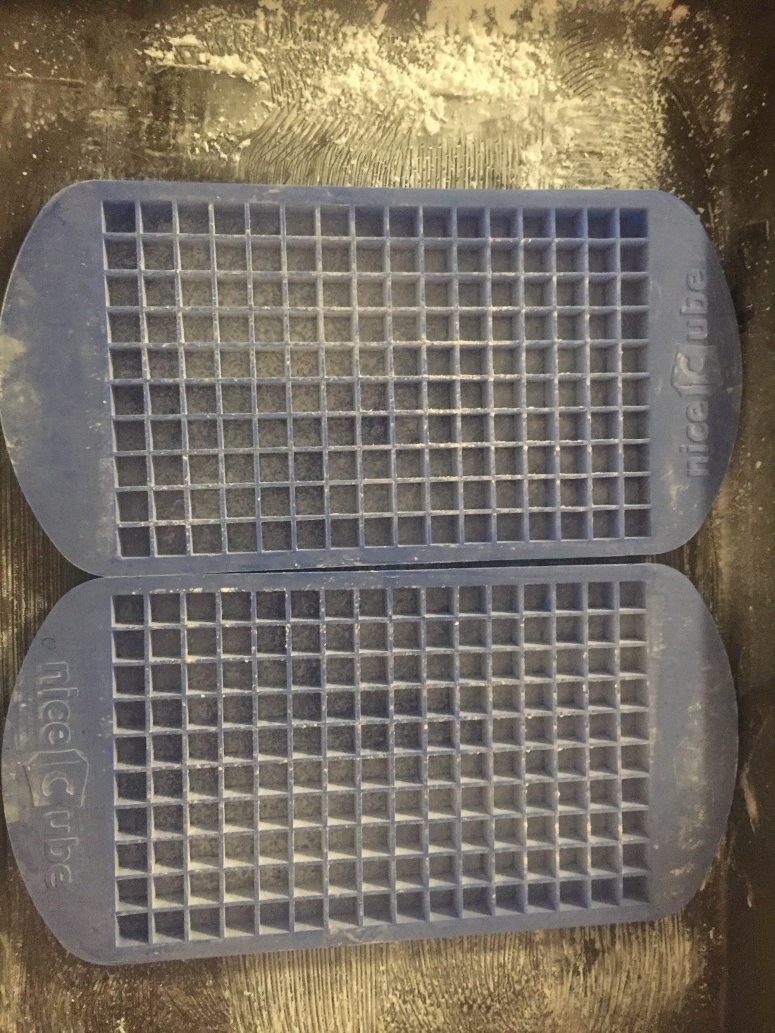 Now for what all those easy to find recipes online won’t tell you… how to make it pretty! Well you could always go with the “stained glass method” but I’m going with tiny cubes. I purchased silicone ice cube trays that are also heat resistant and can be used for baking, that have tiny cubes. By coating the ice cube trays with a fine powdery coating of corn starch to prevent sticking and to make it easier to remove my sugar cubes I can easily pour the hard crack stage candy into the candy molds to cool and then just pop them out and they are ready to go! This also meets my purchasing rule of “has to have dual purpose” before I buy anything new… small ice cubes in summer will be a treat! I can also freeze small cubes of oil or butter with herbs mixture for cooking and other things using these little cubes.