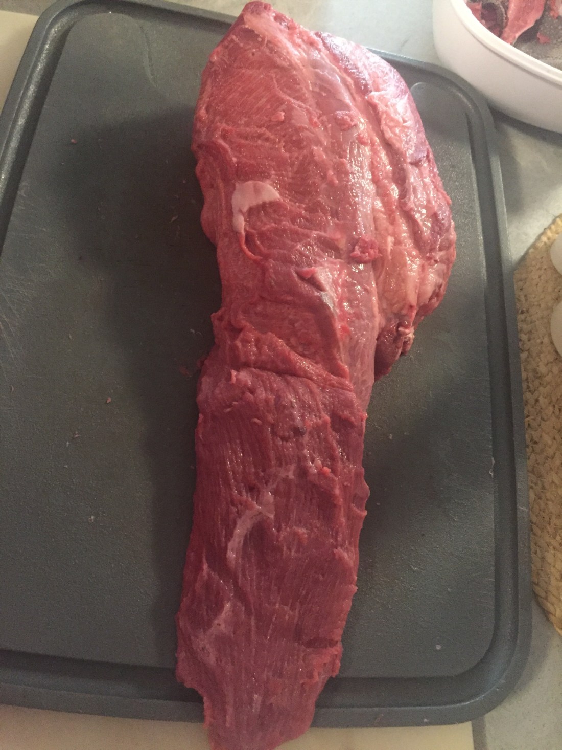 So … I have to warn you, if you are squeamish… you may want to stop reading now and especially not look at the photos lol. We first “skinned the tongue because I don’t want the “membranes” on the outside of the meat getting stuck in my grinder and breaking it. We then cut off the tip of the tongue to save for the humans dinner and used the rest to grind into dog food along with the other meats.