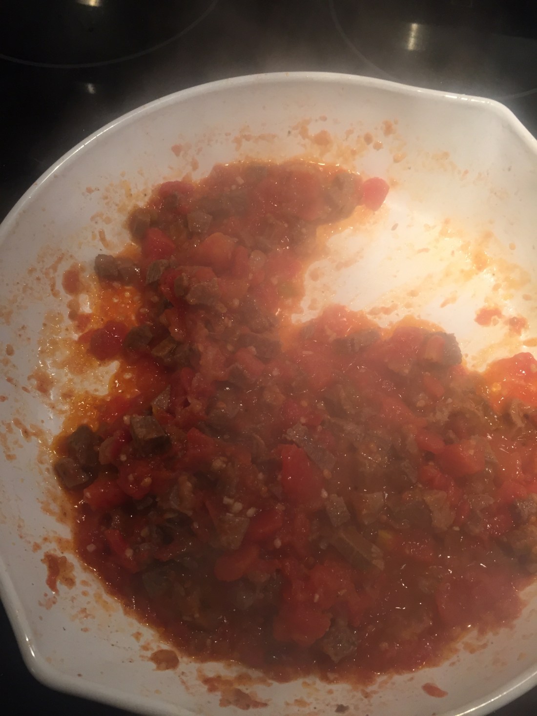 Next we took the meat out of the Instant pot (ensuring it was cooked all the way thru and pleasantly tender) and cut it into small strips. Placed it in my favorite Corningware pan (I am such a vintage Corningware addict!) along with a can of rotelle and some more smoked salt. Cooked that on medium heat until the juices from the rotelle basically reduced away to nothing (about 5 minutes max) and voila ready to serve and top with your favorite taco toppings! Hubby and I had 4 taco’s each… so that tiny 1/2 lb of meat really went along way! And oh so yummy!!!!