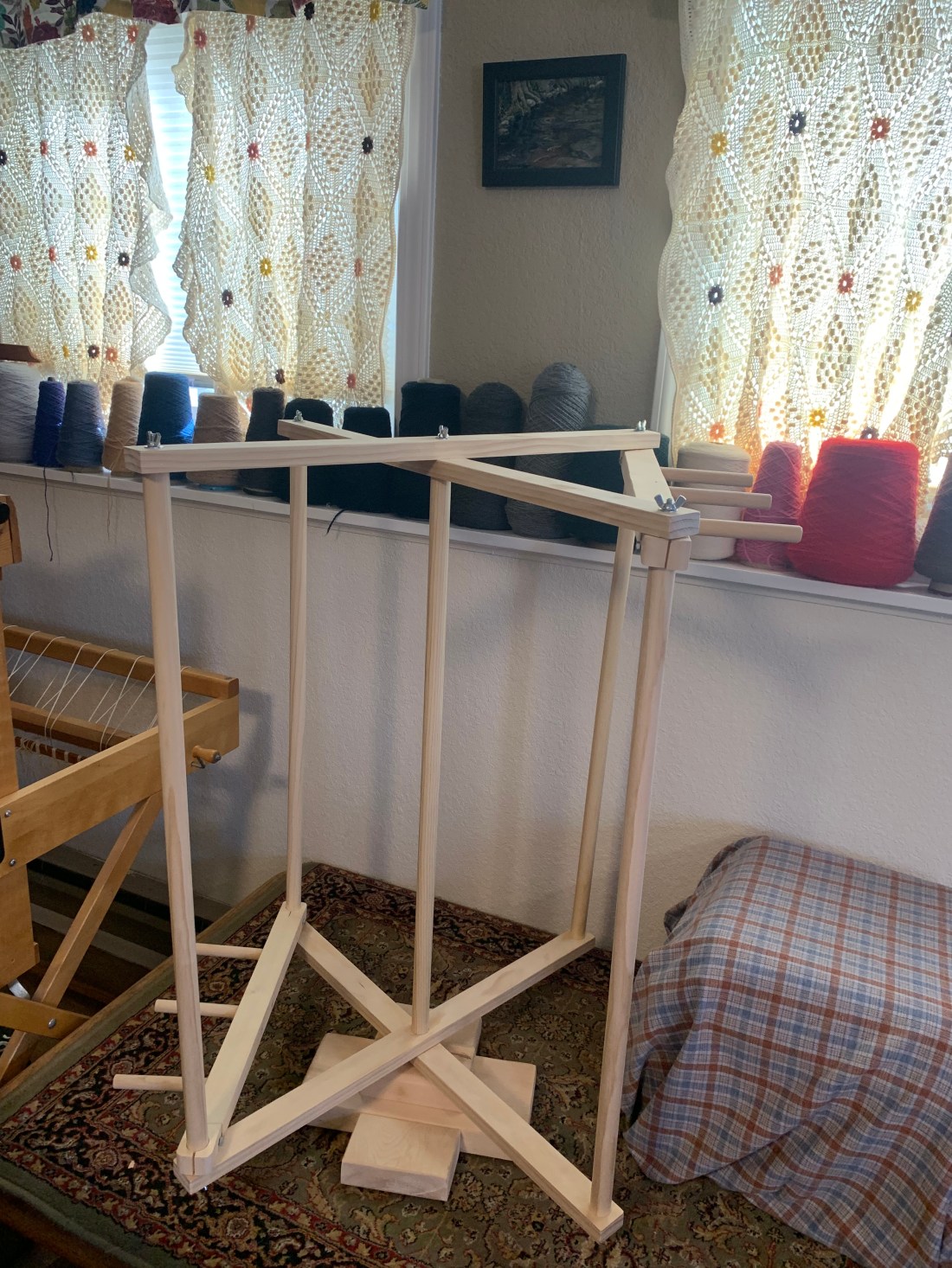 Now while that is cooking I have to give another shout out to the husband of my weaving guild friend who built me this awesome warping reel this week! I’m in seventh heaven folks! I can’t wait to use it!