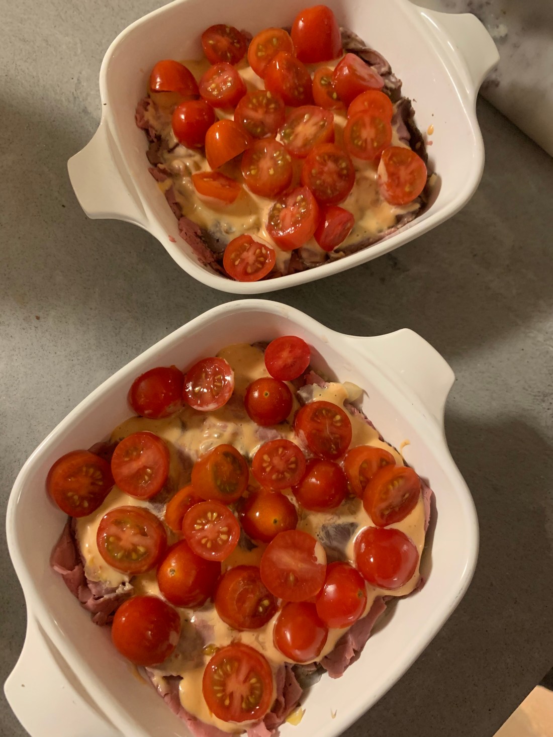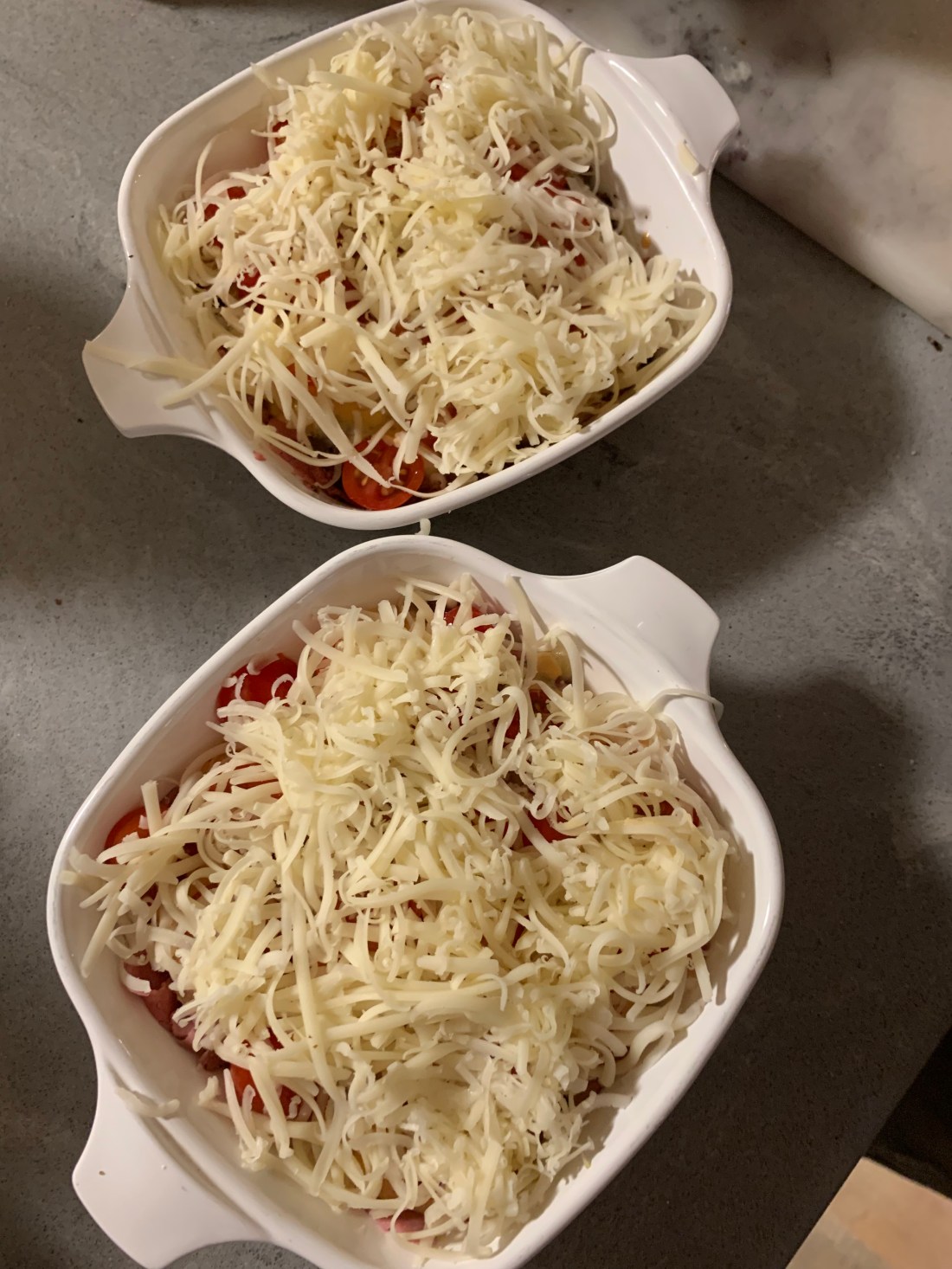 Take the petite pans and toss them in the toaster oven and voila dinner is done! Everything is basically cooked so all you are doing is melting everything together and warming it up. If you are concerned about burning the bread crumbs on top you could cover with foil or put them on later in the cooking process. Honestly it really depends on what kind of toaster oven you have… so just go with what you have and adapt as necessary.