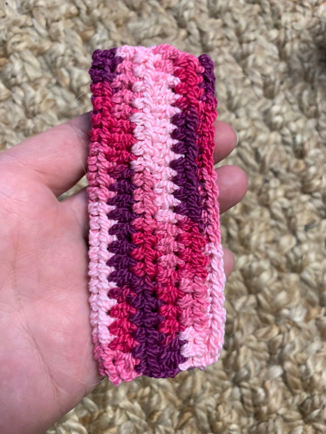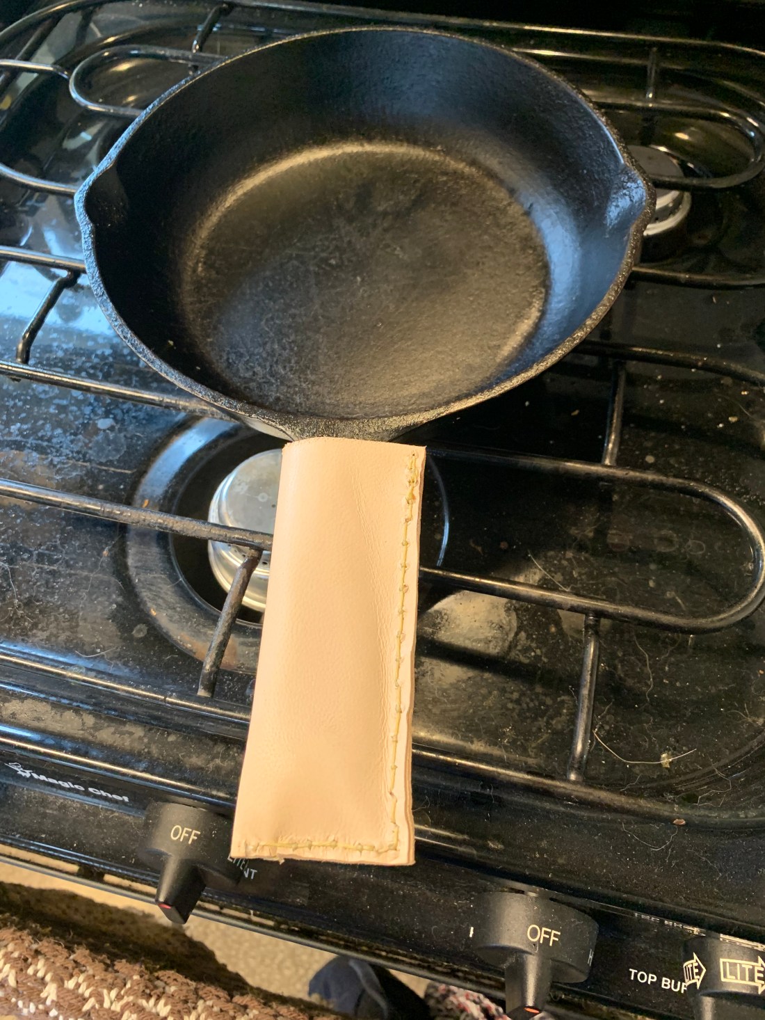 Next… one must have some fun activities for such inclement weather days! So we decided to do some binge TV watching using our Roku and cell phone internet connection 🙂 hubby is a genius on hooking up electrical stuff lol. Meanwhile hubby got out his leather tooling kit and made us a leather handle for the cast iron skillet which this one is the prototype to one he is going to make with a pretty tooled design later. I made several crochet holders for icee-pops! Something small and fun and easy to do while binge watching a favorite series on TV and waiting on laundry to finish. In between walking dogs who didn’t want to go outside in the cold and wet! And then washing and drying muddy paws of course… sigh… more towels to wash lol