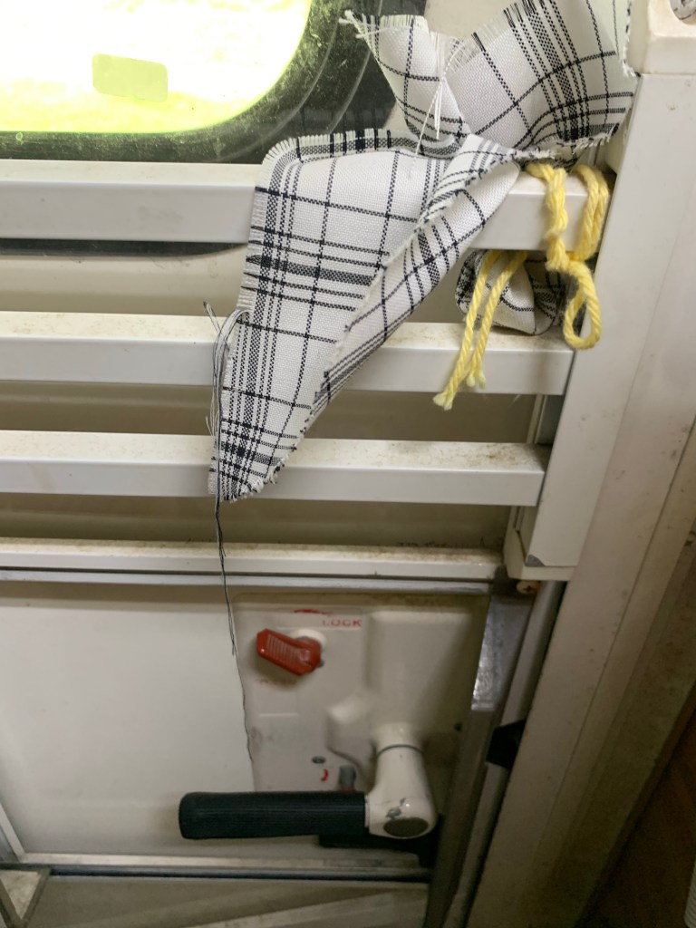 Take a cut square’ish piece of scrap cloth (if you want to go fancy you can purchase cute little muslin bags at the craft store instead… but you will need a bunch of them!) and place about a 1/2 teaspoon of whole cloves and one full bay leaf (crumble it in your fingers) in the center of the cloth. Gather up the edges of the cloth so the spices are balled up in the center and tie a piece of yarn around the cloth to hold the spices in place. I leave the yarn with a long tail so I can use that tail to tie the spice sachet onto vents and window locks etc. I also toss a few into the storage compartments in the RV and hang some in the cargo trailer and in the car… where ever the bugs usually show up that’s where you want these sachets! Make lots of them and be generous in their placement. In bedrooms or any normally high infestation places I take ornamental containers (shallow bowls and tea cups work) and place a good handful of the spices right into the container as well. If you have allergies… the nice thing is the scent from these spices are not very noticeable at all and they don’t bother me like insecticides and perfumy products usually do. You might get a very slight scent that smells like pie baking? But honestly you have to be right up on those spices to even smell that!