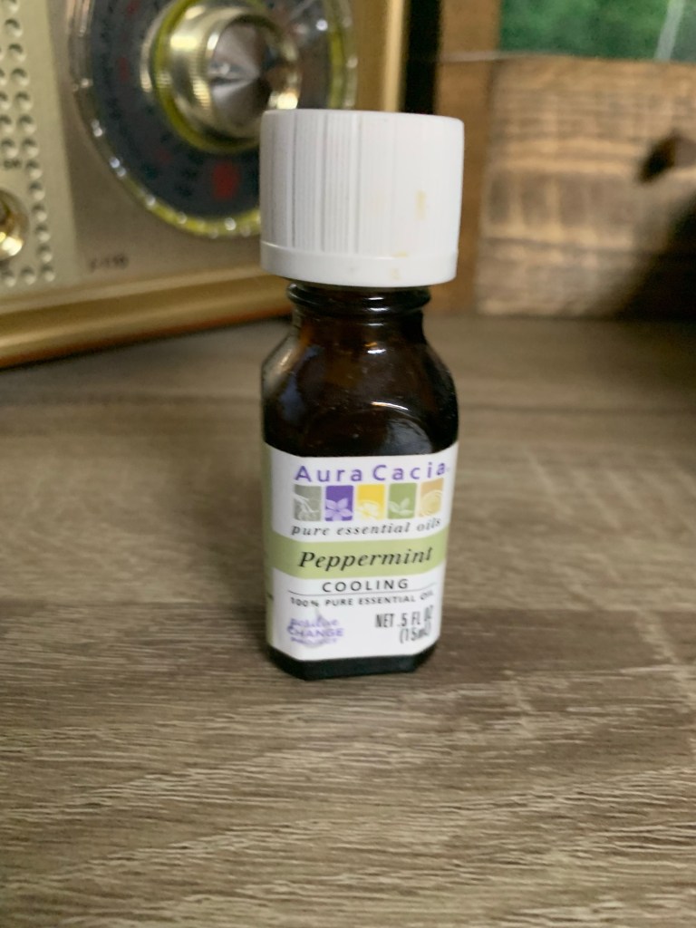 The next step is to add one drop of Aura Cacia brand peppermint essential oil to each cheek of Mr. Toilet-head, who will be hanging somewhere in the bathroom smelly area. I prefer this brand of essential oil as it holds it’s scent much longer (and is much stronger) than any other brand I have tried, so don’t be tempted to try the other brands you may find at your local big box store. Go online and order this brand from their website directly if you can not find it locally (try some other scents if you don’t like peppermint, but peppermint also keeps bugs out of the RV nicely so this is what we prefer. We also like spearmint, lemon grass, cinnamon leaf and citronella to name a few).