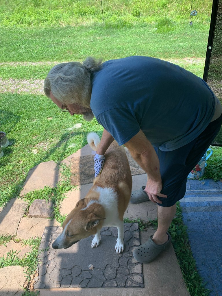 We keep this out on the patio so when we are done playing outside and frolicking In the tall grass, we can brush the dogs down. While “petting them” with this glove on, which they enjoy a great amount, we inspect for ticks and hope the little nubs will brush off any little freeloaders we may not see. A simple command of “time to get brushed off” makes both dogs come running with tails wagging. A secondary effect means some (not all) of the shedding fur is removed which means Less cleaning time in the RV (win win!) and more outside play time. A simple “flap” of the hand while wearing the glove allows the hair and any other debris to fall from those rubber nibs onto the ground. Easy to use, easy to transport, and Conestoga Chuck approved!