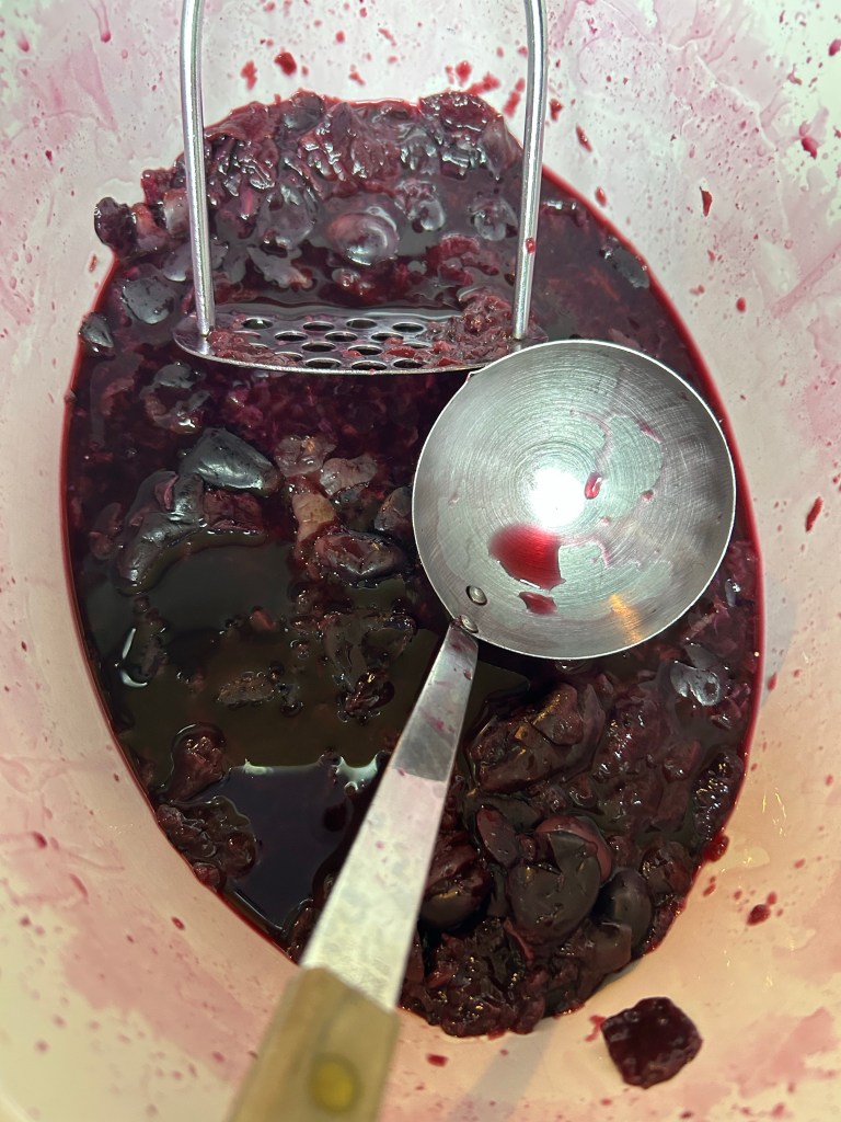 While that was draining into the now folley milled pulpy grape juice mixture…