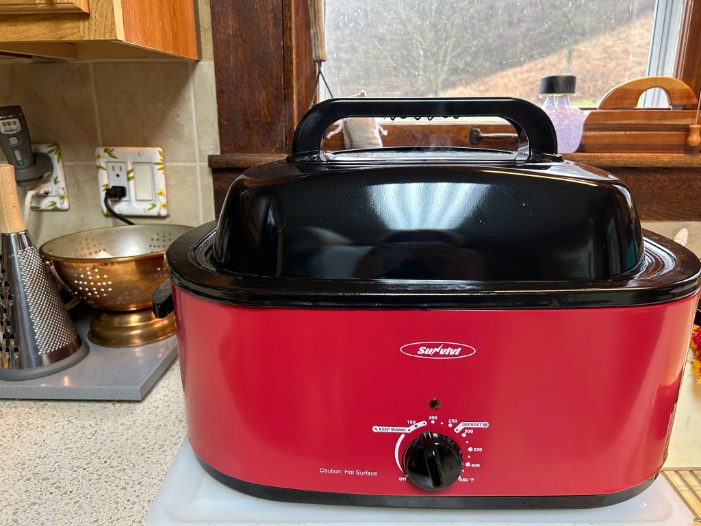 Anyway… this electric turkey cooker has so many uses! Time to explore and give yourself a second oven at home when trying to cook those holiday meals or an outside oven while camping etc… it’s a good multipurpose item! Even good for people who like to dabble in spinning wool into yarn lol