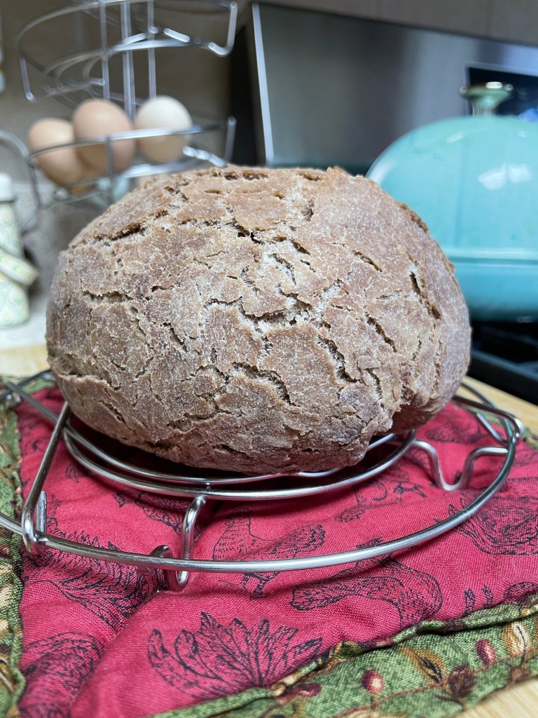 So I did a bit of experimenting! I decided to use my bread recipe and make bread with cocoa powder mixed into the flour. See previous post for the bread recipe. I added 1 heaping spoon full of cocoa to the flour as I sifted it. Then added the yeast water as normal and followed the recipe as usual. Since I was experimenting I only did a half recipe for this loaf to see how it would turn out and the results are a resounding “let’s do that again!”