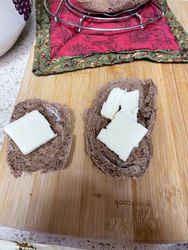 I’ve also been using cocoa powder to sprinkle on top of my bread to make designs using a paper doily as a “stencil” which turned out really nice and gave me the idea for chocolate bread. The stenciled lace cocoa design turns out really pretty! I keep forgetting to take a picture of that so I will have to do so at a later date.